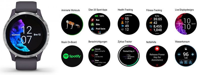 Другими интегрированными технологиями мониторинга активности являются: Аккумулятор, датчик Pulse OX или Garmin Connect.