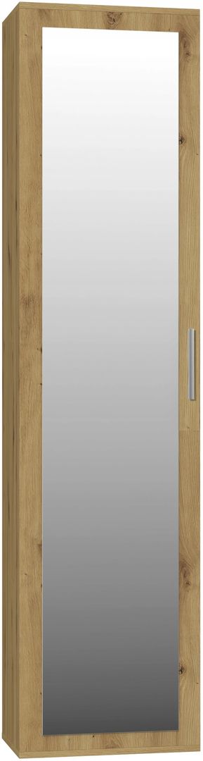 Мебель изготовлена из ламинированного ДСП высочайшего качества, устойчивого к царапинам и влаге, с усилением краев ПВХ. Боковины шкафа ровные, без отверстий снаружи, что повышает эстетичность изделия. С внешней стороны шкаф оснащен зеркалом во весь рост, что позволит с удобством выбирать наряд для выхода из дома.