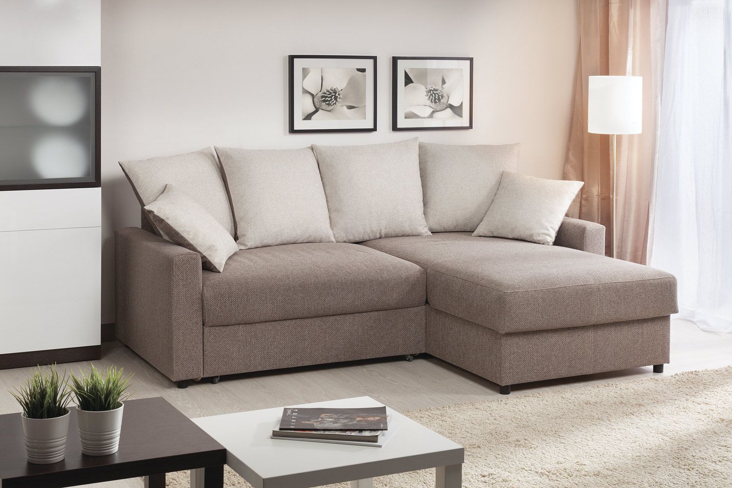 Dacă aveți un living compact sau o bucătărie mică, o canapea de colt miniaturală este soluția perfectă. În ceea ce privește funcționalitatea, este aproape la fel de bună ca modelele mari: adesea are sertare pentru depozitare, iar mecanismul de transformare oferă spațiu suplimentar de dormit. Cu o selecție corectă a dimensiunii, un astfel de mobilier nu supraîncarcă spațiul.