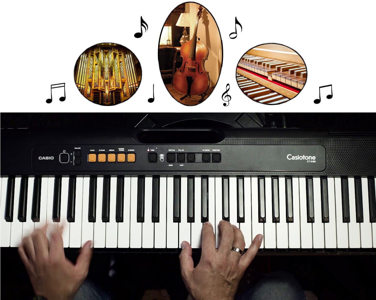 Sintetizatorul portabil CT-S100 dispune de o tastatură dinamică. Este realizat într-o dimensiune compactă și poate funcționa autonom de la baterii, astfel încât îl puteți lua cu dvs. pe drum sau în turneu. Are un mâner de transport convenabil în partea de sus, iar forma sa aerodinamică și combinația de culori negre îl fac un accesoriu elegant pentru orice interior.