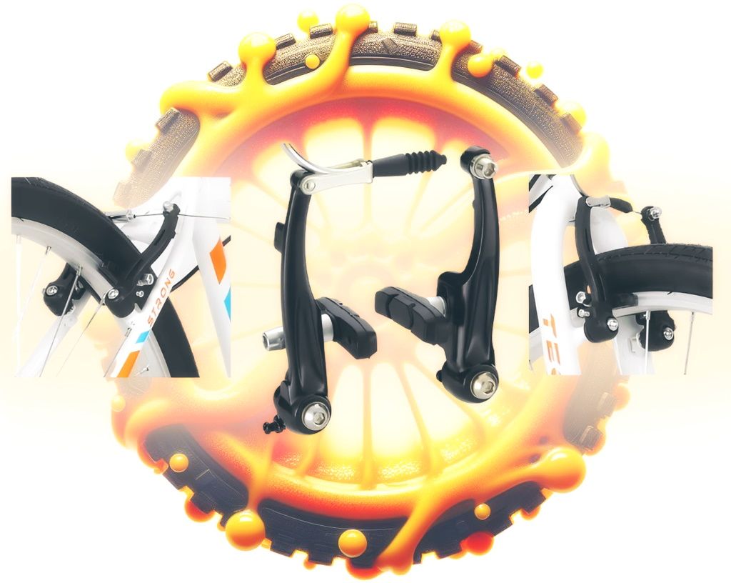 Bicicleta este echipată cu frâne mecanice pe jantă V-brake. Acestea constau în manete speciale care, atunci când sunt apăsate, strâng cablurile și atrag plăcuțele de frână spre jantă, creând fricțiune și încetinind rotația roții. Frânele V-brake se caracterizează prin construcție simplă, fiabilitate și o întreținere relativ ușoară.