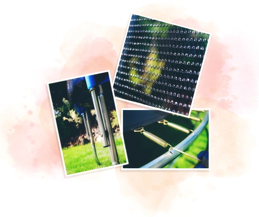 Trambulina are un cadru solid din oțel și o plasă moale care protejează împotriva căderilor și a rănilor. Covorașul, tensionat cu arcuri călite și galvanizate, este o soluție fiabilă și de lungă durată pentru trambulină. Galvanizarea arcurilor previne coroziunea și le protejează de mediul înconjurător.