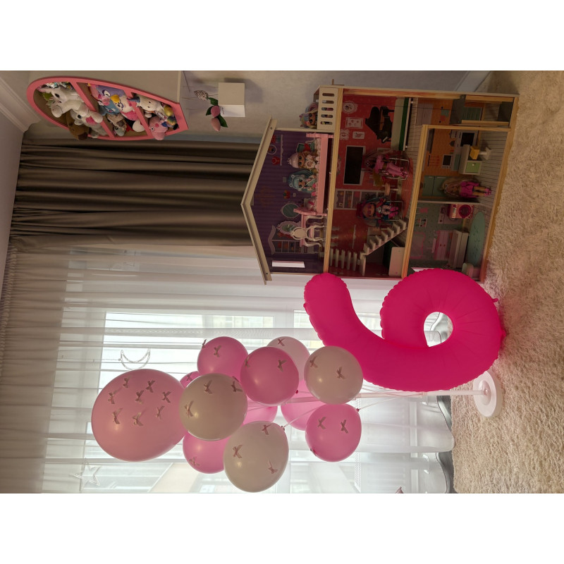 Отличный кукольный домик!!! Сборка легкая, дом огромный! Вмещает в себя большое количество кукол. Лифт с подъемным механизмом.