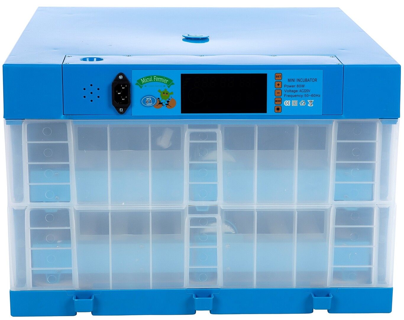 Carcasa incubatorului este confecționată dintr-un material termoizolant, asigurând o temperatură optimă și constantă în interior.