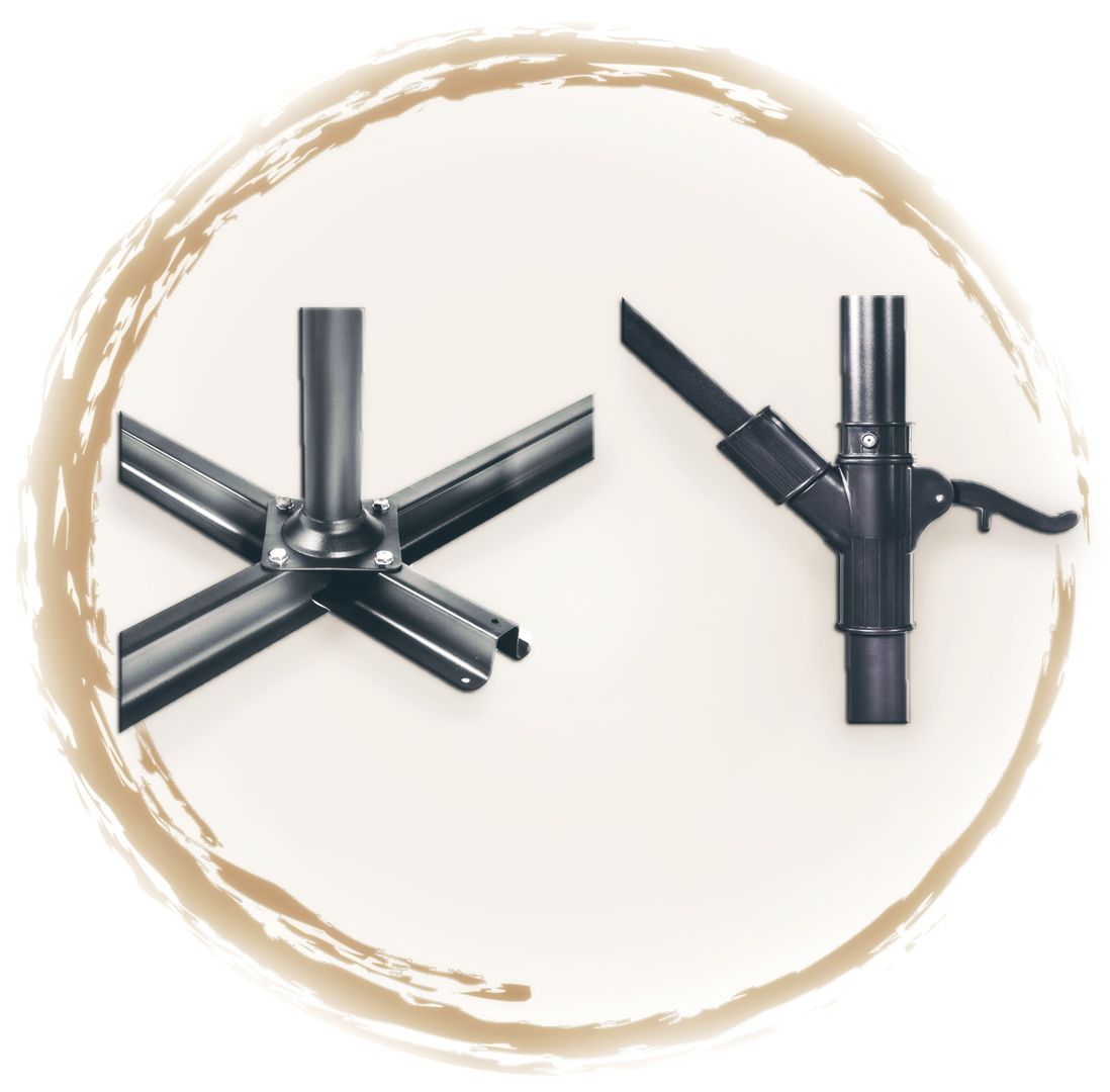 Umbrela are un unghi de înclinare reglabil, ceea ce vă permite să o ajustați la unghiul potrivit pentru a vă proteja de soare sau de ploaie. De asemenea, este echipat cu o manivelă, care este utilizată pentru desfășurare și pliere. Baza acestui model este realizată din material durabil care asigură fiabilitate și stabilitate în toate condițiile meteorologice.