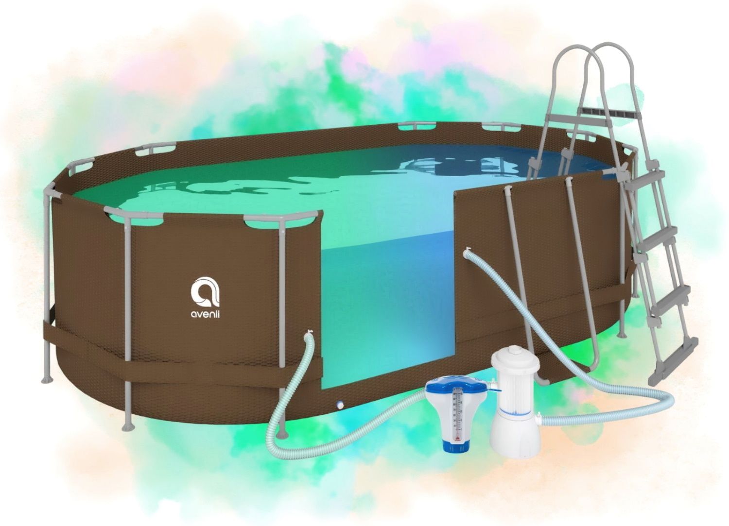 Овальный большой каркасный бассейн Avenli 2820 - это истинное воплощение роскоши и удовольствия для вашего летнего отдыха. Изготовленный из прочных и долговечных материалов, бассейн Avenli обеспечивает надежность и долгий срок эксплуатации.